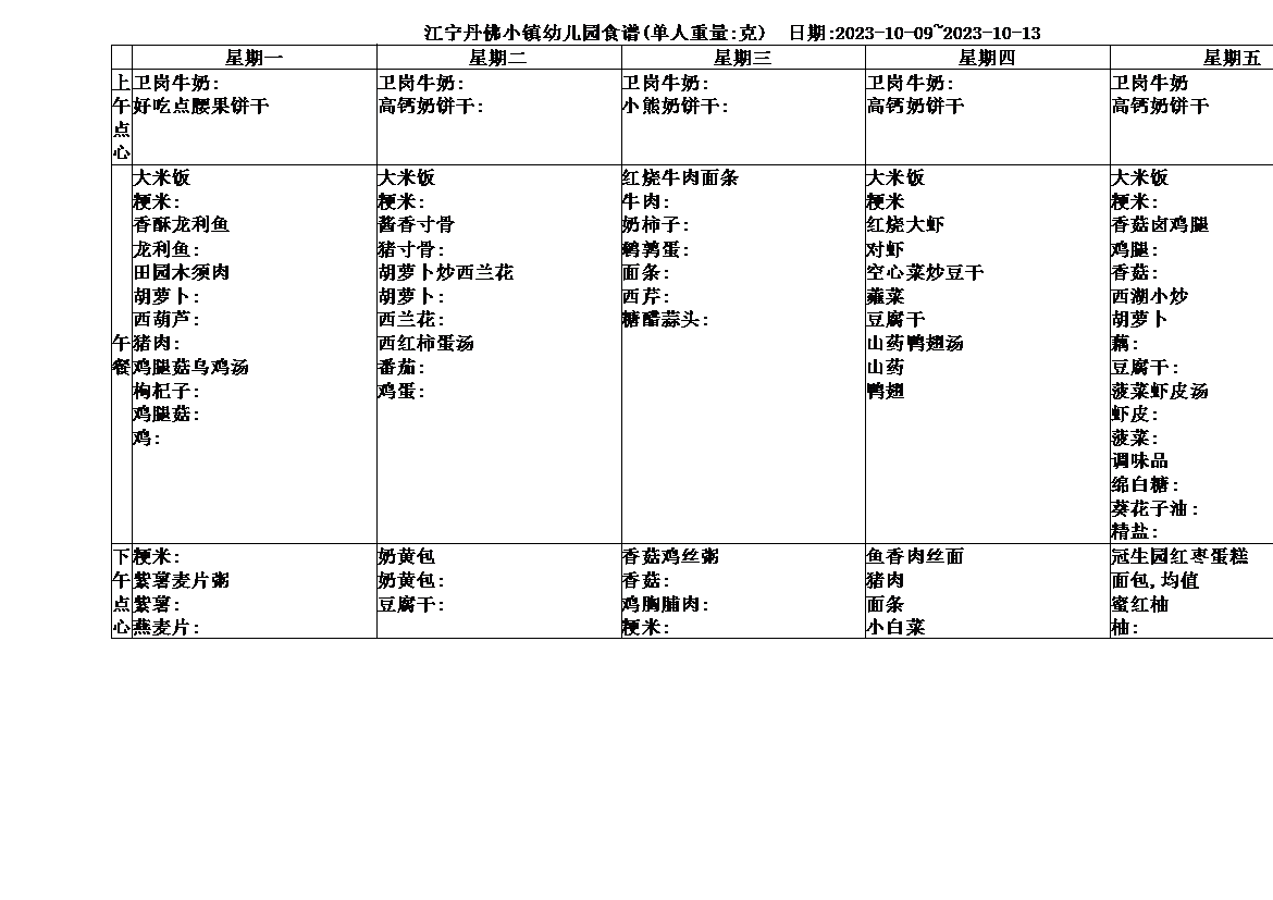 2023年10月9日-10月13日食谱