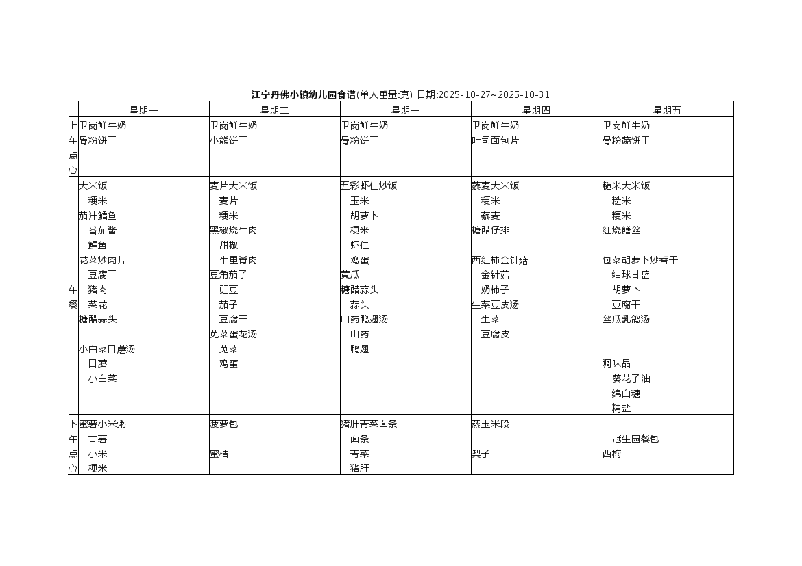 2025年10月27日-10月31日食谱